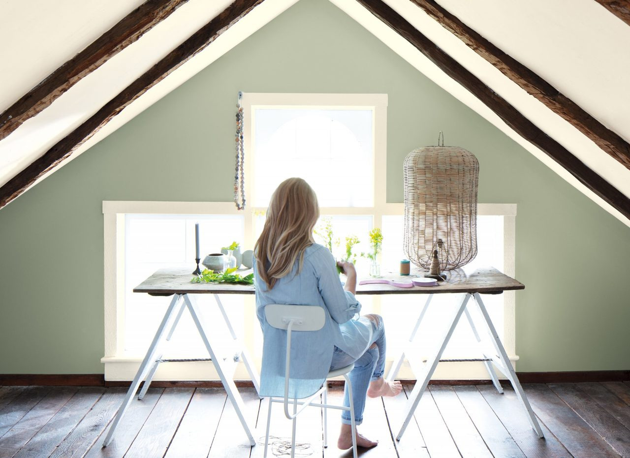 從2019年起大家的生活開始從假日直奔海濱度假回歸到宅在都市中,如何將海濱度假的氛圍帶到都市來又不顯突兀? Behr色彩與創意副總裁 Erika Woeful表示,像Breezeway這樣帶點銀色的綠非常適合!因為Breezeway是有趣的中性色,它激勵我們主動擁抱自己的愛好與冒險,最適合能夠照亮室內如同陽光般的人們。
