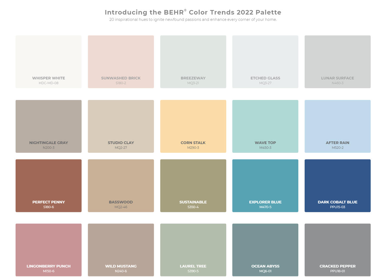 Behr提供了官方的配色技巧, Breezeway與白色、灰色和天然木色調相互協調,在任何房間中都能營造出輕鬆的風格。簡單來說在Behr年度色表中選出的顏色與之搭配都是適合的喔!