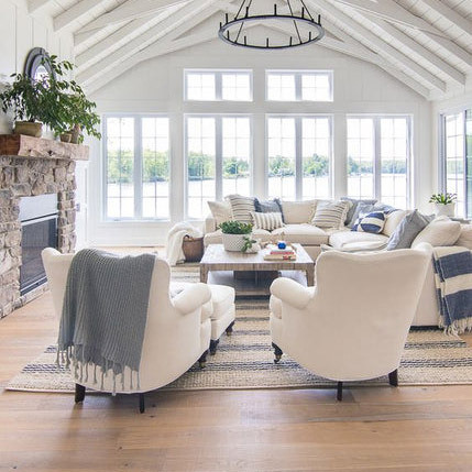4.Hampton style:美劇裡豪門名流的海濱渡假勝地,藍白海洋元素、清涼感渡假材質,美背組合式海灣沙發,中島椅,休閒單椅,組合出夏日海濱的渡假氣息。