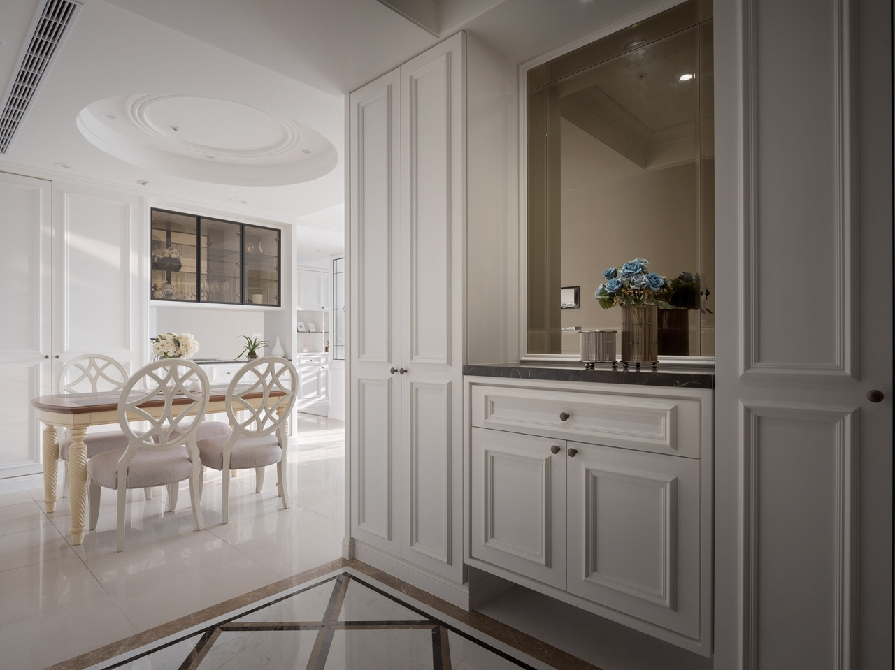 - 美式雙色餐桌搭配鏤空圓背餐椅,呈現視覺穿透感