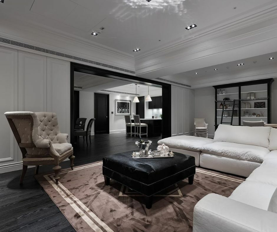• 經典的黑白灰色調:傅總巧妙地運用黑、白、灰三種經典色調,創造出和諧且不失質感的居家氛圍。這種色彩搭配不僅永不過時,還能輕鬆融入各種風格的家具與裝飾品。