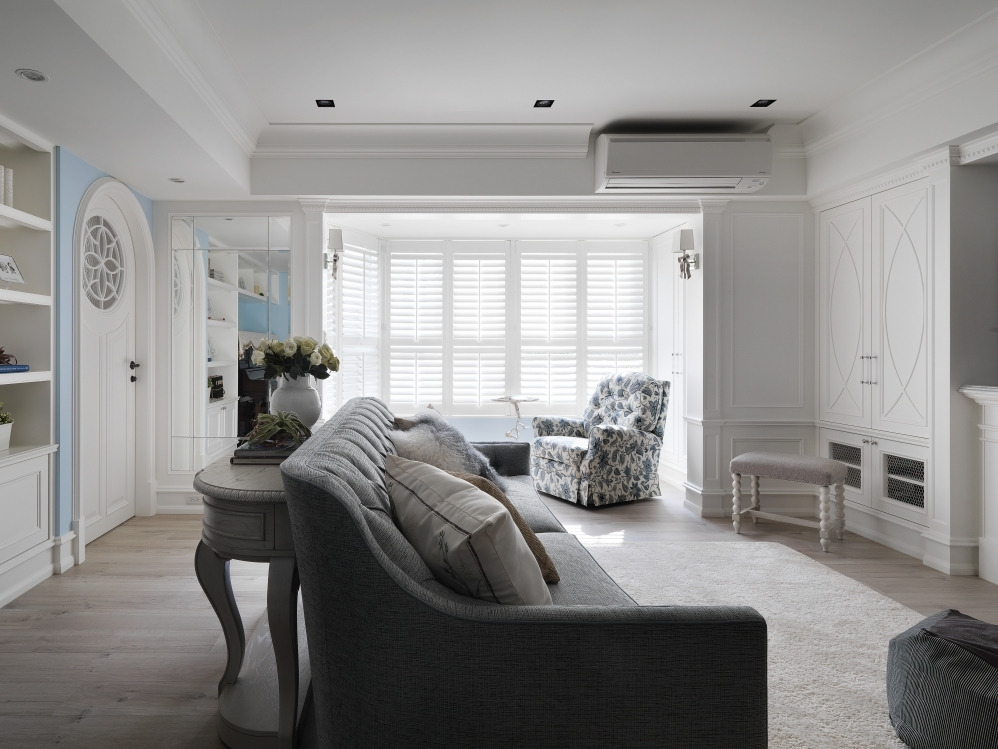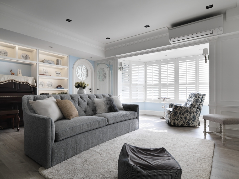 以實木地板和米色地毯為主調,再利用其他傢俱,交融出極為和諧又溫暖的家居風格!利用不同款式的沙發和主人椅,展現自由開放的休閒空間,伴隨著鋼琴聲,窗台處恣意的陽光灑落,在溫馨度假氛圍中,珍惜每一個幸福的小日子。