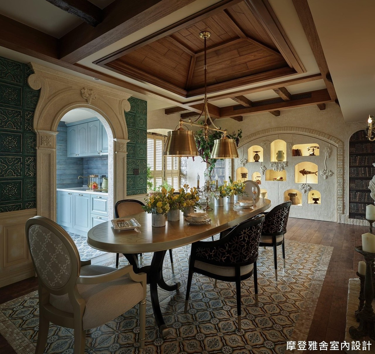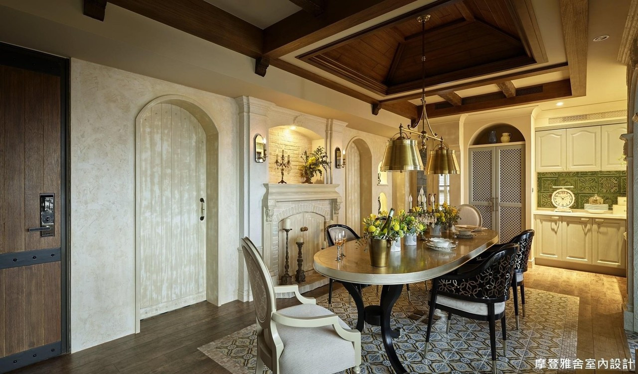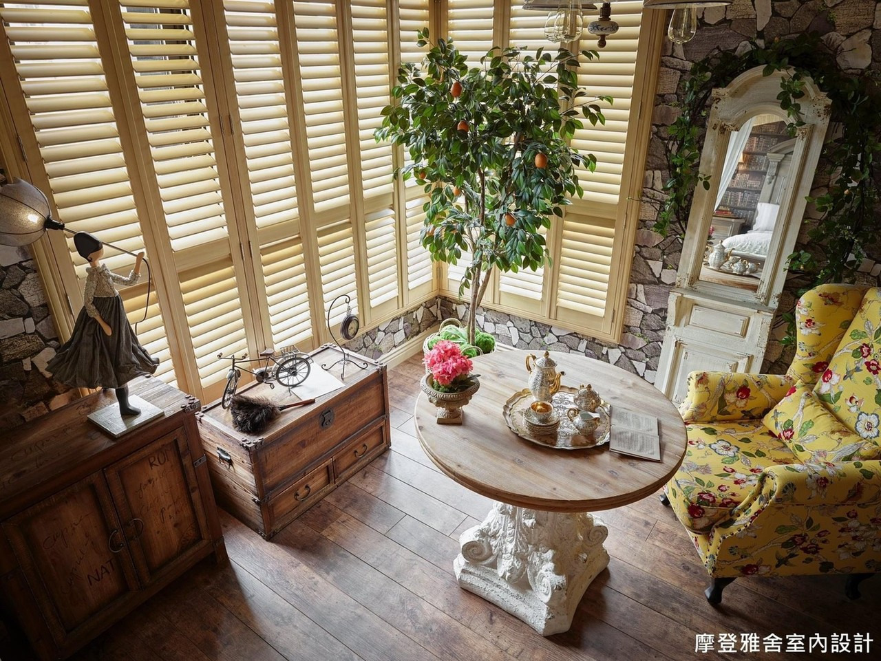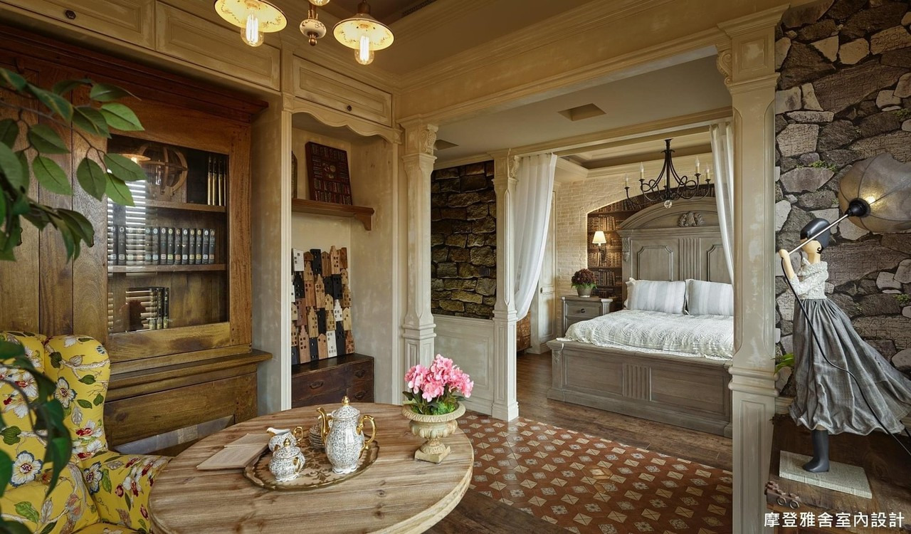 著迷於異國鄉村風的姊妹屋主,規劃複合式空間的時候,以葡萄莊園為主軸,挑選的歐風家具偏向藝術、浮雕、木質,古羅馬石牆烘托出莊園氛圍。