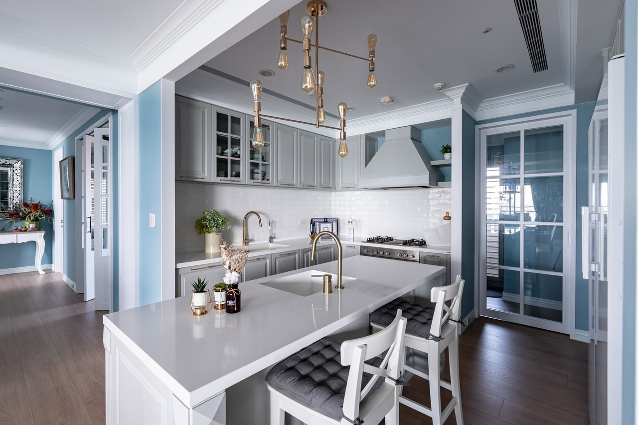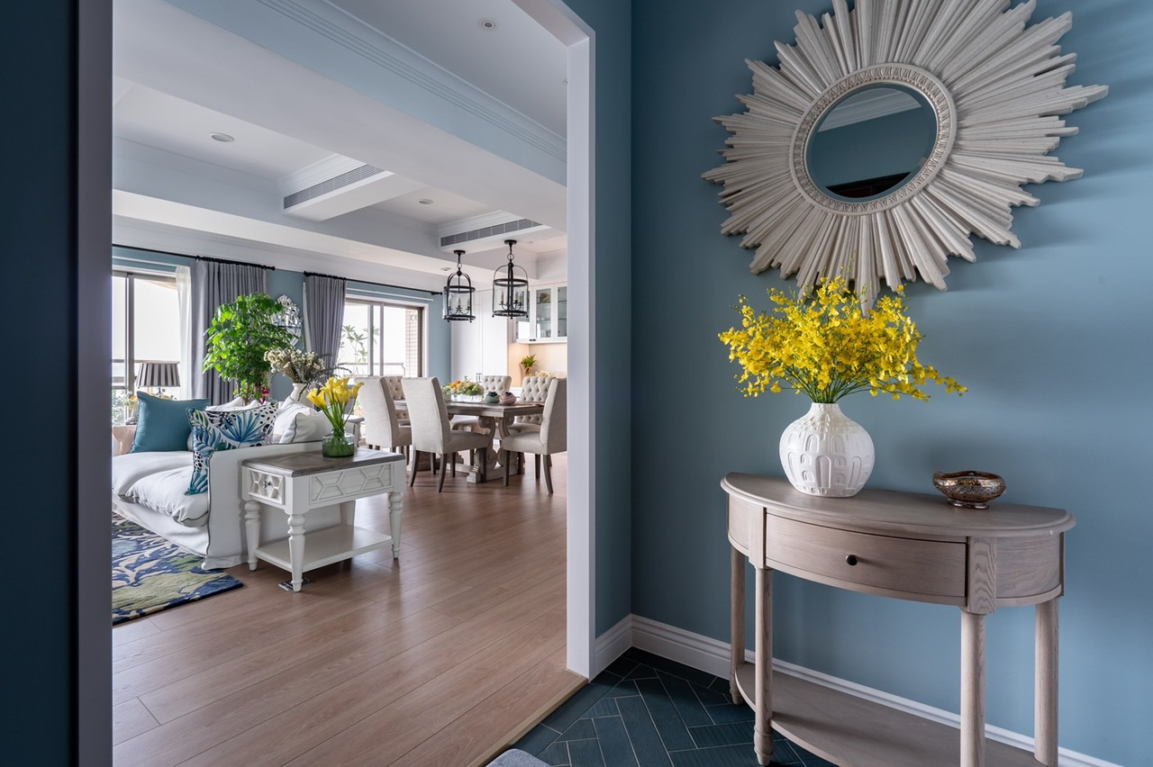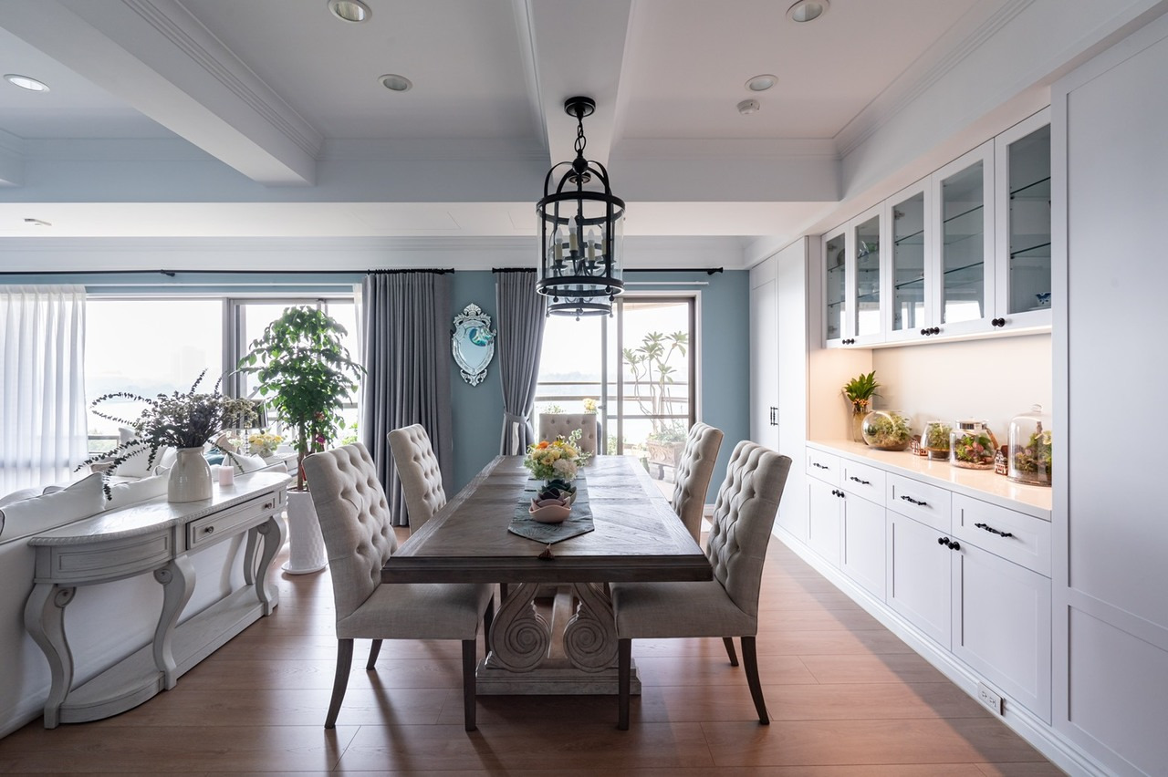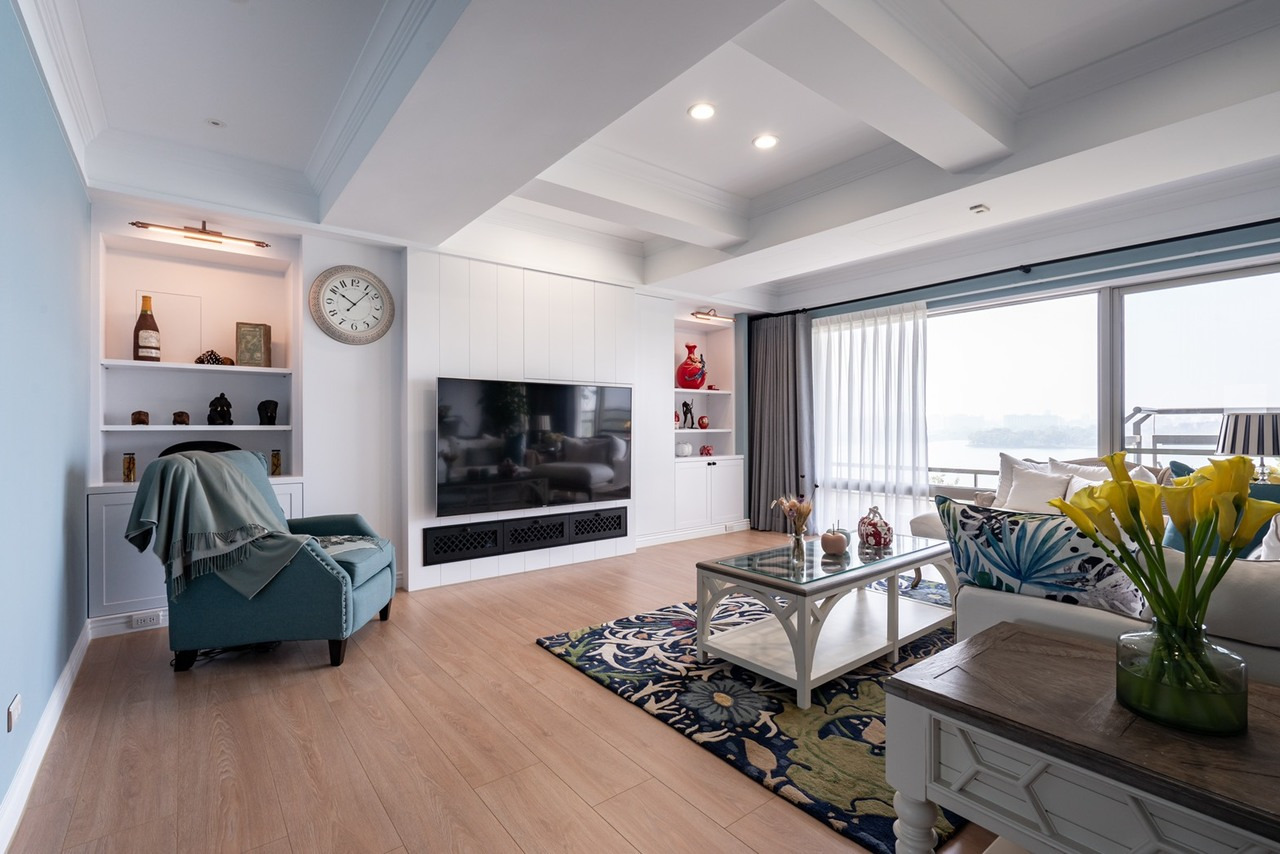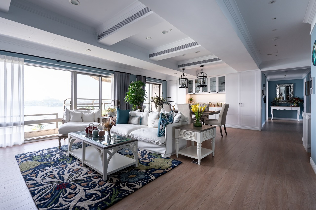 念念不忘,必有迴響,豐澤園與這位客戶結緣十年,再度攜手打造新居。以往最愛歐洲旅遊的業主,一路與豐澤園的度假風理念深具共鳴,這回將心目中最能放鬆心情的渡假氛圍,注入這原本就帶有峇里島渡假風的景觀住家,一起挑選了藍、白、原木搭配的精品家具,重現湖濱散記的悠閒情致,依傍湖光山色,坐擁南法渡假莊園。