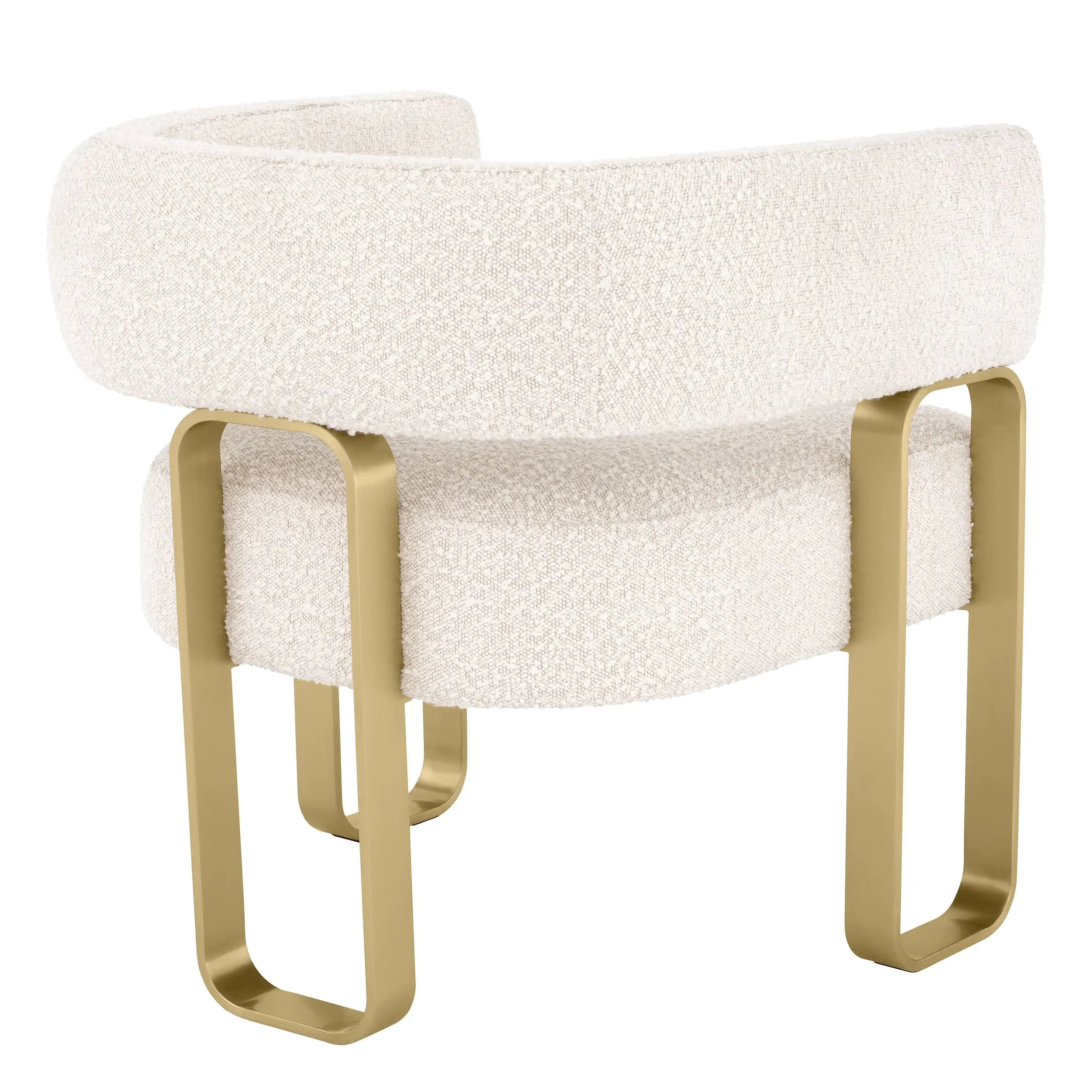 Capricorn 扶手椅以時尚線條與豐富質感打造出極致的現代魅力。開放式椅背與椅臂呈現極簡輪廓,完美詮釋 modern glam 的設計語彙。搭配 拉絲黃銅椅架與 奶油色羔羊絨布料,展現奢華質感與獨特造型,是提升客廳風格的理想高端單椅。