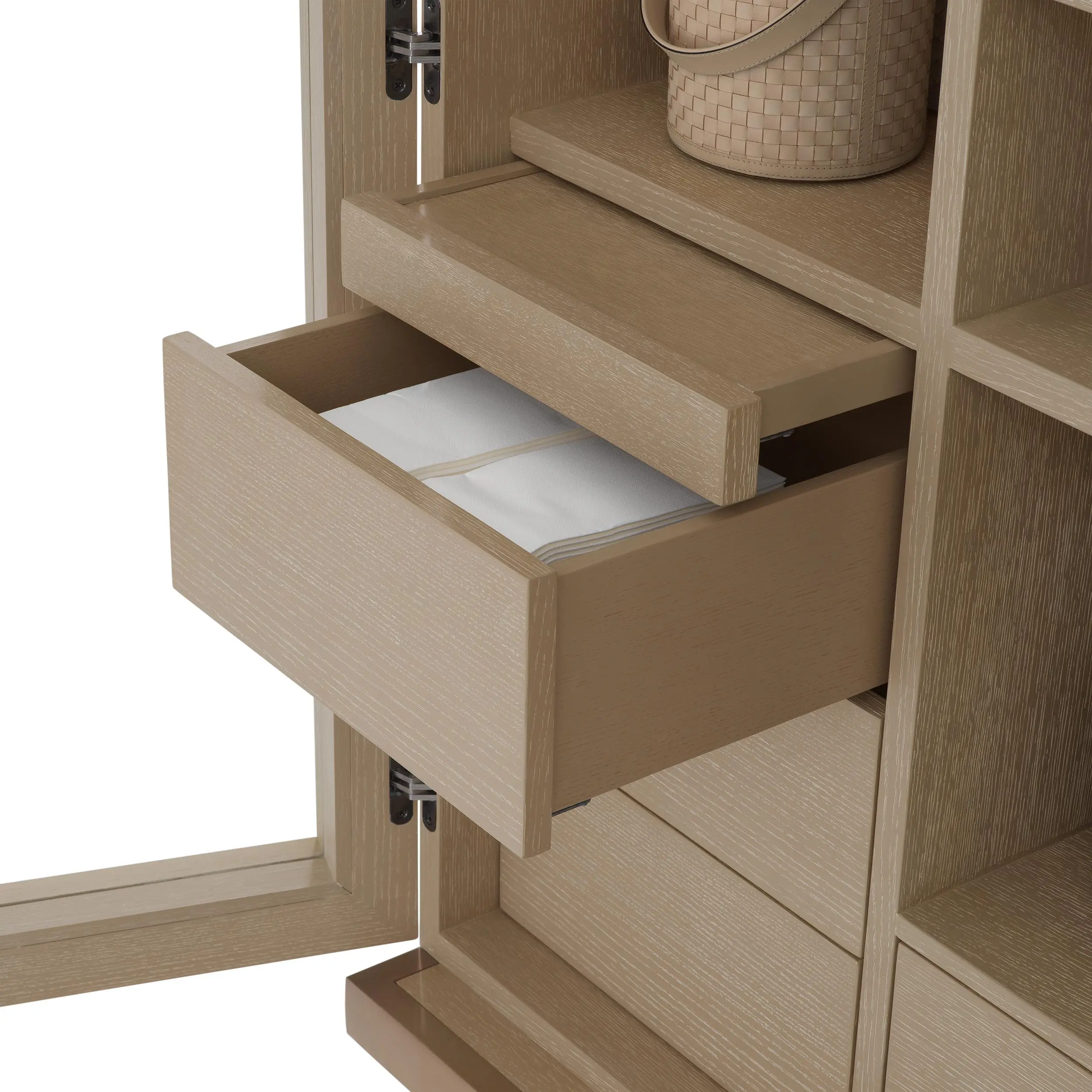🔍 首頁 線上商城 餐廳 邊櫃/酒櫃 Bar Cabinet Connaught washed oak veneer brushed brass finish 現貨| RH-EH-119417 邊櫃/酒櫃 Bar Cabinet Connaught washed oak veneer brushed brass finish 尺寸(cm): 110W x 60D x 150H 加入最愛加入最愛 描述 Connaught 酒櫃散發精緻優雅氣息。淺色橡木紋理搭配奢華銅色細節,呈現高貴格調。雙透明玻璃門與多功能收納設計,將實用性與奢華完美融合,是高端居家或商業空間的理想收藏單品。
