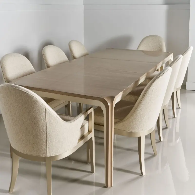 結合優雅弧形結構與溫潤木質紋理,適合家庭聚餐與餐廳空間配置。