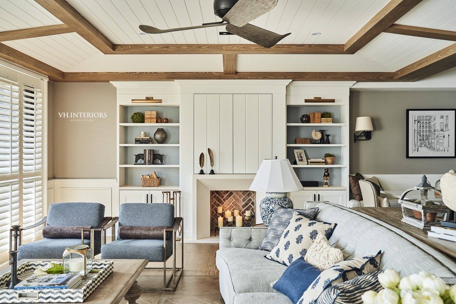 #美式海岸風 #CandaceSofa #空間設計 #壁爐書牆 #高腳椅 #RegencySideChair #居家美學